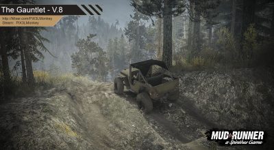If you enjoy a challenge get ready for the Gauntlet. This map was created with a little of of everything to cater to all types of Mudrunner fans. There are steep rock climbs, deep muddy roads, hairpin turns, dry creekbeds, and other varied terrains to keep you entertained for hours. This map is not for the faint of heart, but have faith, it is doable. This can be completed alone, but I’d recommend you play it with friends for a truely engaging multi-player experience. This is the first widely available drop of this map. I’m tagging it as v.8 since I want to incorporate a couple of rounds of community feedback into it before calling it complete. I will keep an updated list of my maps there in my profile page. Please stop by and say hi, or just leave feedback in the chat window if I’m offline.