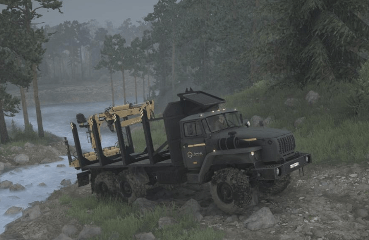 Plot: open the garage, find trucks that are scattered on the map, refuel, repair and from the logging site to drive the forest to the sawmills.