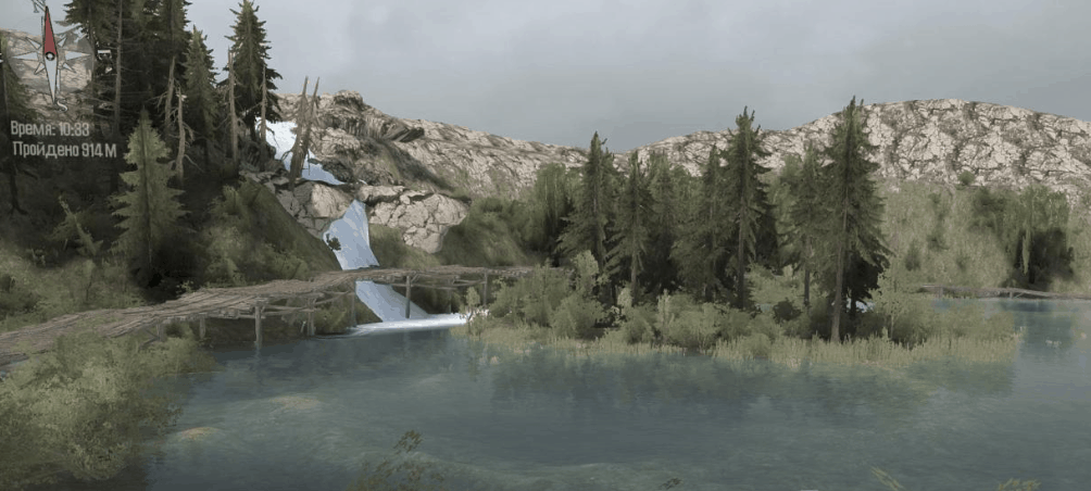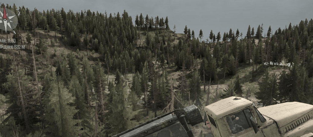 You will find a lot of dirt, deep bogs, ravines and potholes, a rocky canyon, bridges and fords, in general, everything you need to feel yourself as a logger driver in extreme conditions.