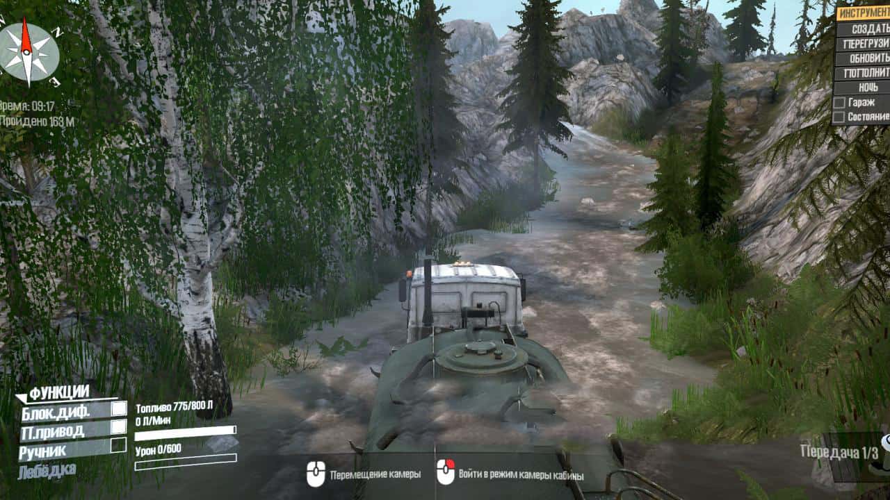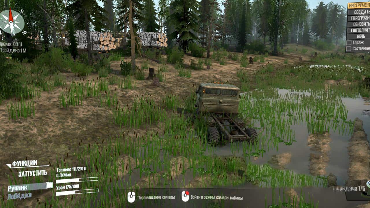 There is no logging site, there are no kiosks on the map, there are cars already loaded with timber, it remains to separate them into files. Map – ROCK CLIMBER slightly reworked, removed the gas station, added a file and not a lot of dirt. Monoprivod will not work, only all-wheel drive.