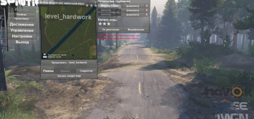 The “Crossroads of Seven Roads” map represents ascents / descents, roads along a slope, fords and swamps, in some places the roads are dangerous and there are chances for a coup. The map, as they say, is a corridor, but, 1 corridor – 1 sawmill, except for one road, you will have to drive it twice because leads to 2 nail files. The card was tested on default cars, it will be difficult or not for modified cars, I do not know. For default, some places are given hard.