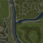 The map is medium in size (672 mx 672 m). The average complexity. Four small hills, separated by two rivers. You will have to cross them with bridges.