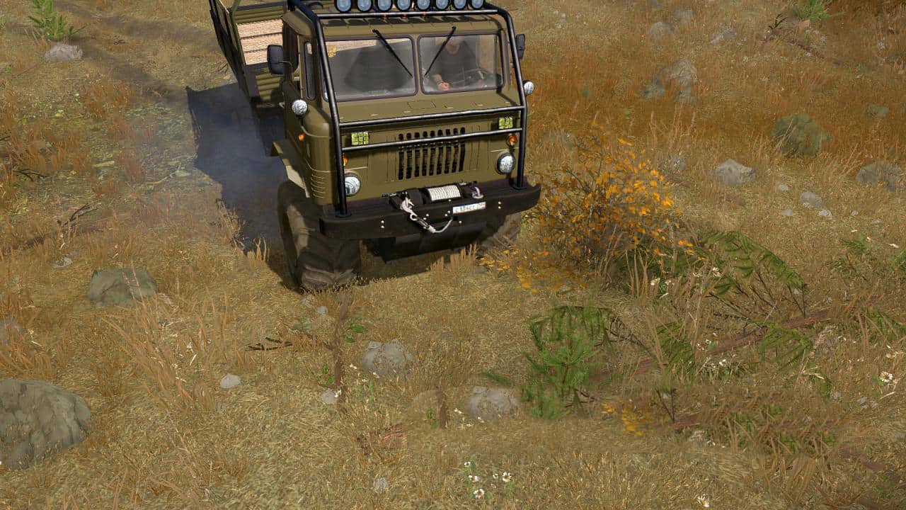 Hello everyone, dear friends. On your court I provide Gas 66 with a dismembered frame from the old version of Spintires. The re-texture mod is almost complete, the lighting is redone. Added addons and some of which are removed. TTX cars are also completely changed, suspension and everything else. Such chips as the animation of fuel, engine, air capture, the disappearance of the reserve is present. No animation fists, physics bridges and water enters the cabin.