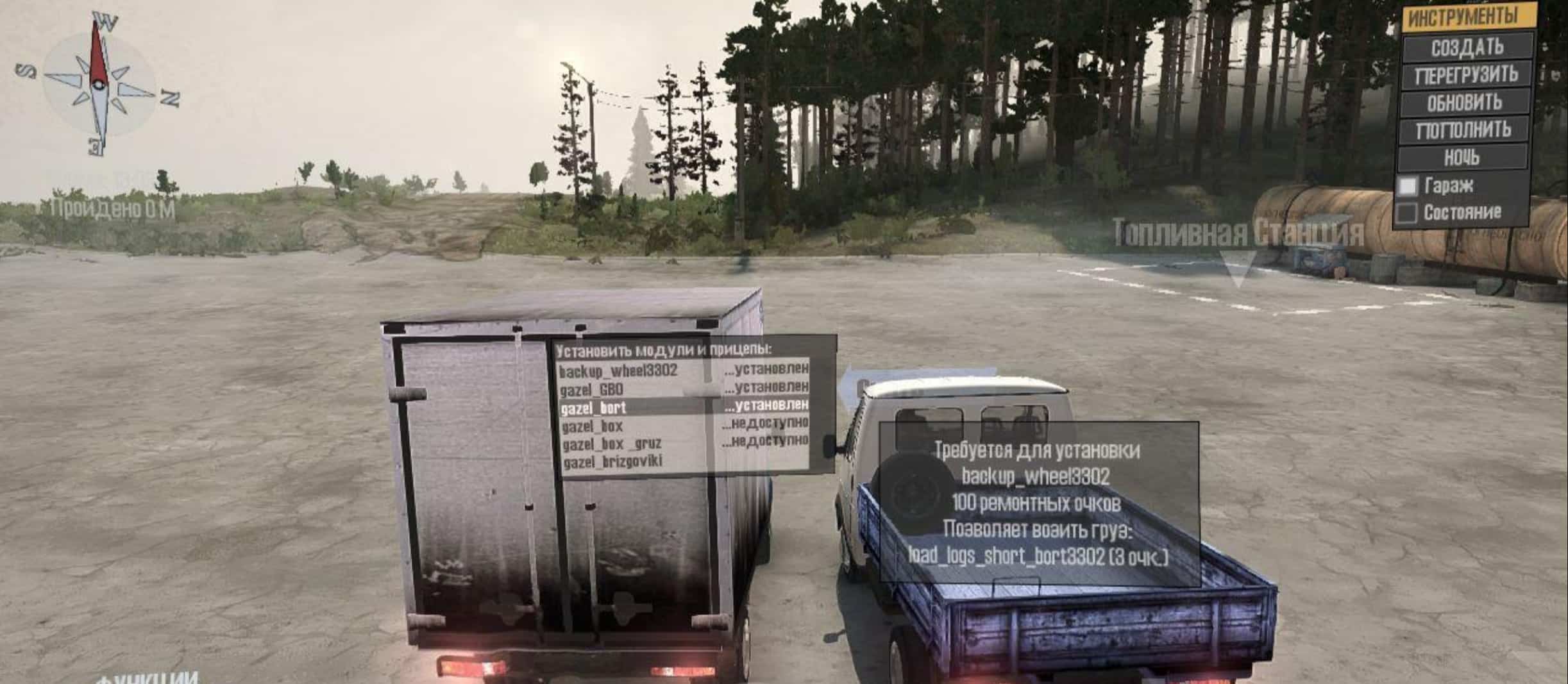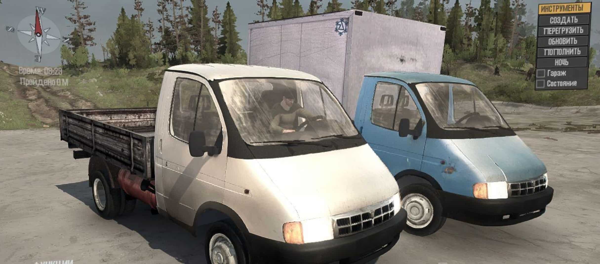 This mod adds to the Spin Tires Mudrunner two versions of the Gazelle, though they only color the bodywork. Coloring typical factory – white and blue. The gazelles have animation suspension and headlights, as well as a view from the cockpit with steering animation.