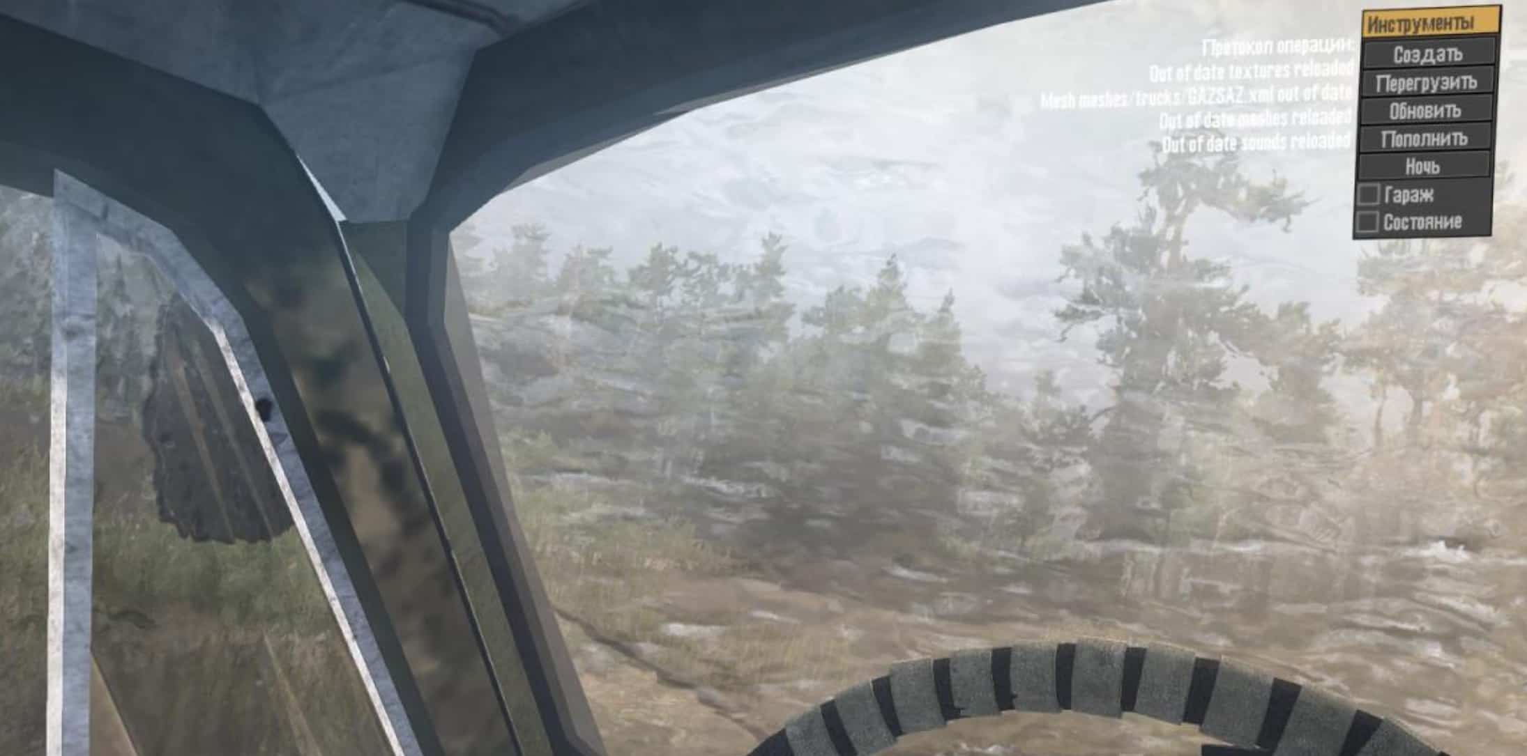 There is a view from the cockpit without a dashboard, steering wheel animations, frames, springs. The glass gets wet (from water).