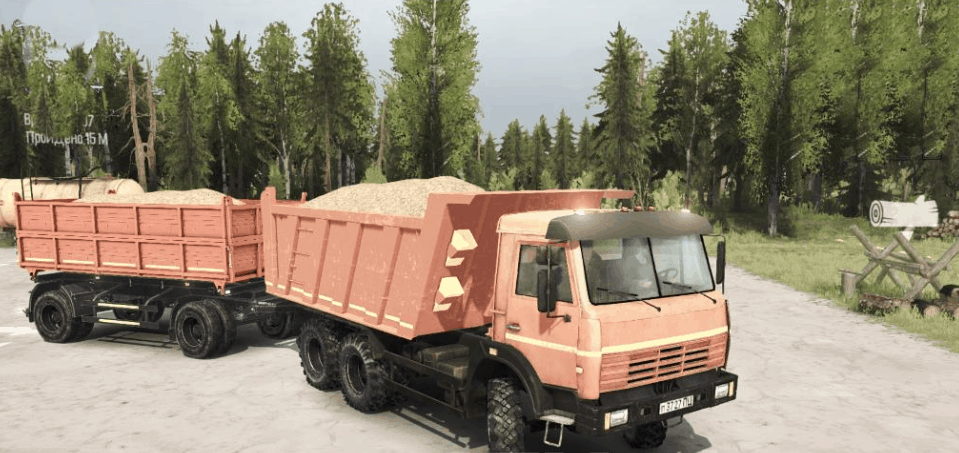 Another trailer for 6522 has been added, now there is no need to replace textures, both models work as it should, the wheels are replaced with 65111 for mud … The whole load has been fixed and fitted and traces of tread have been added.