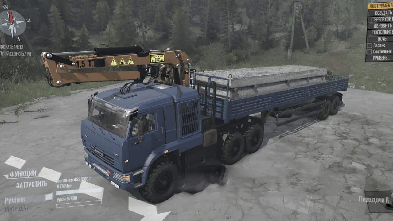 Fixed bugs in the editor, but not all. A crane has been installed. Animation of the steering wheel, cockpit, dump truck doors. Animated mud flaps, cardans, mirrors, cargo in the scow, slurry in the tank … In general, there are many animations. There is no water in the cabin. The mod is in the test version, if errors do not pop up, then I will leave it. Test !!!!