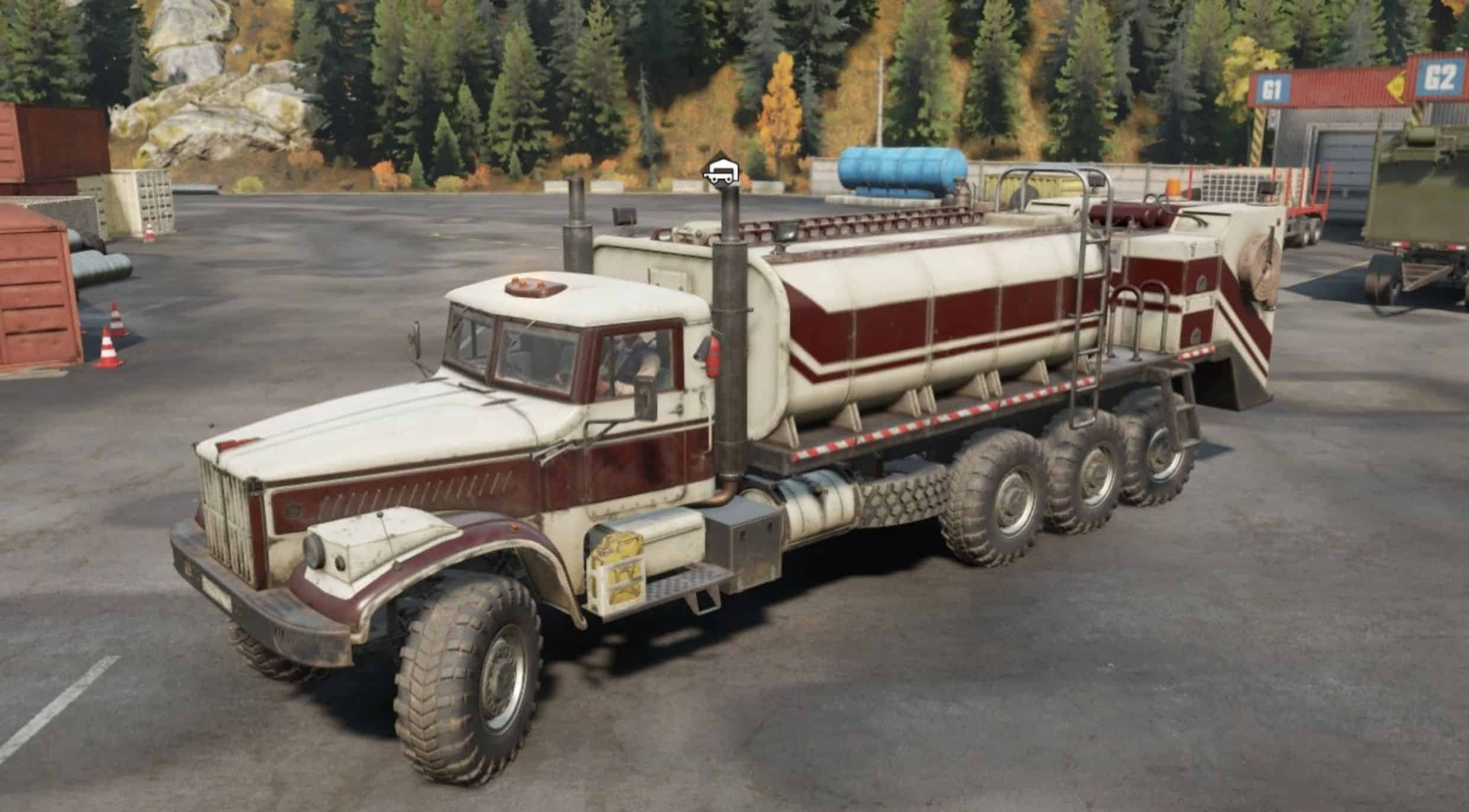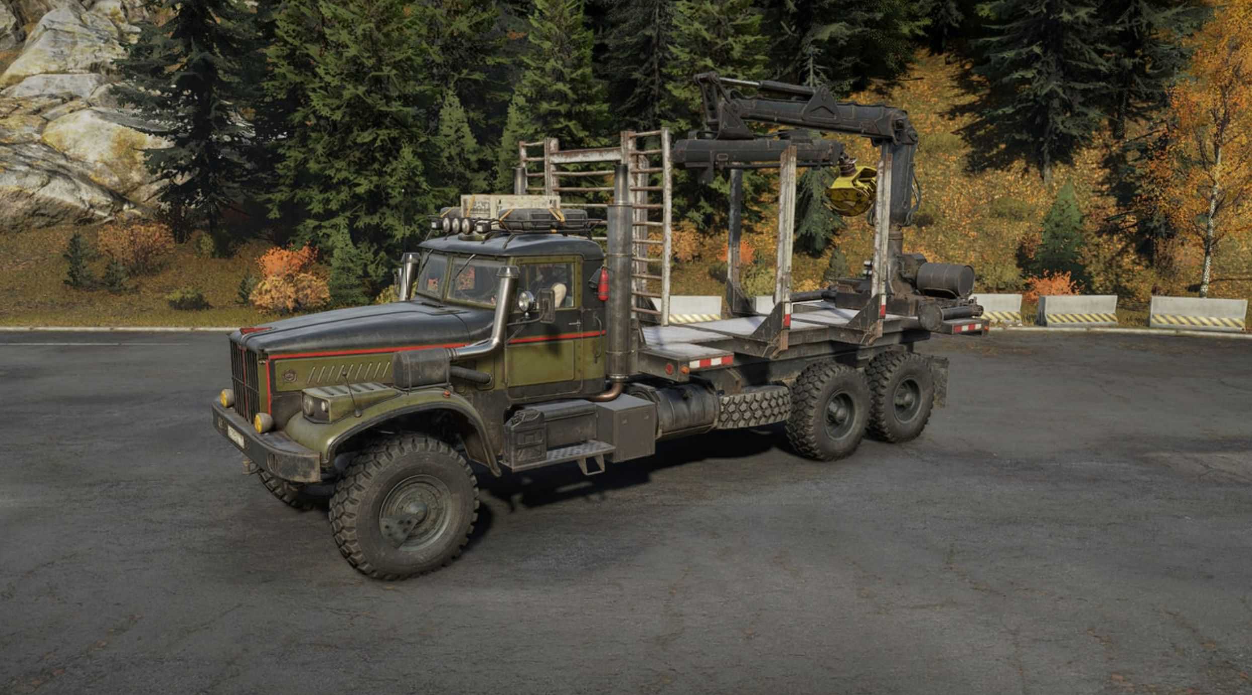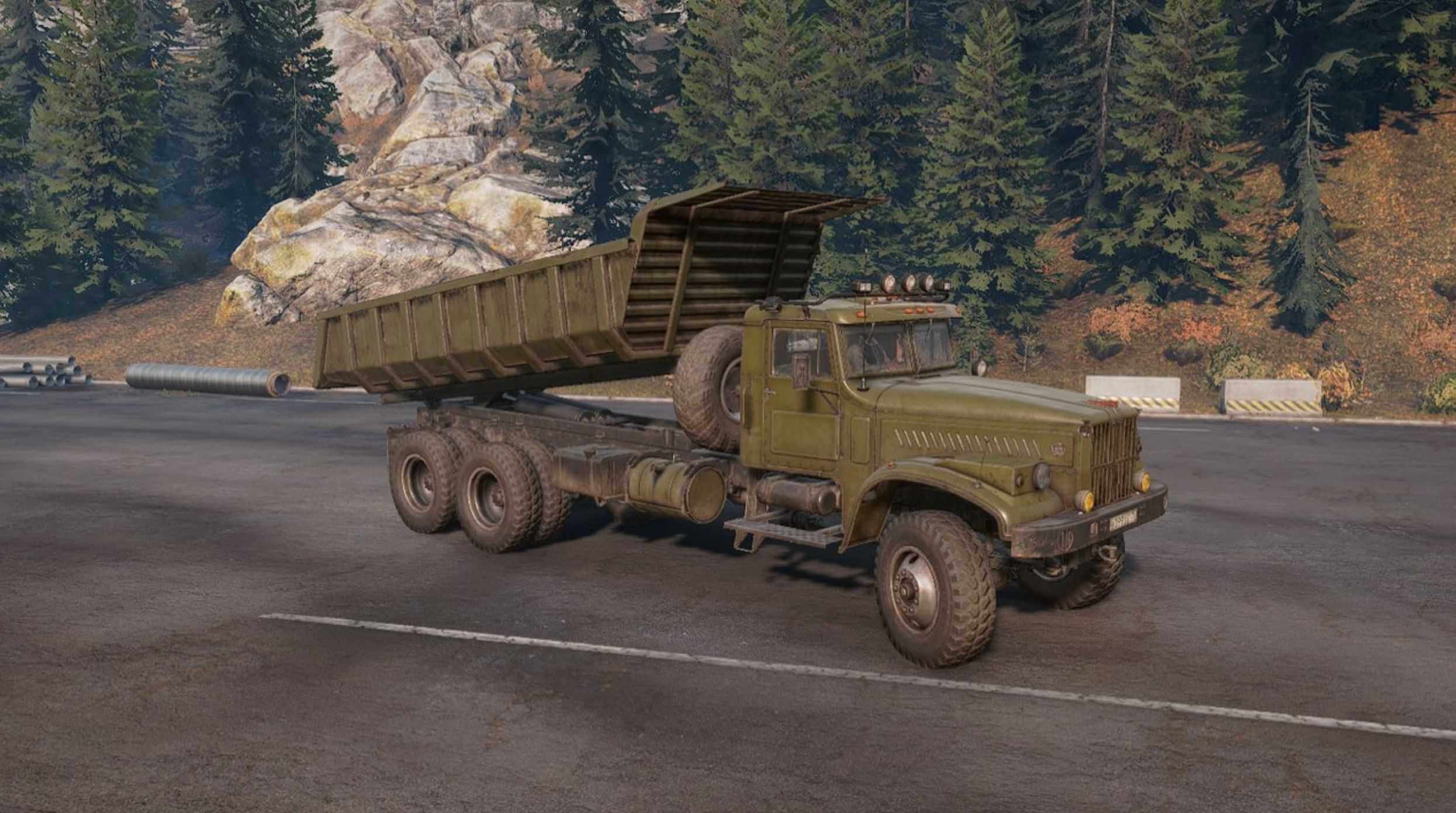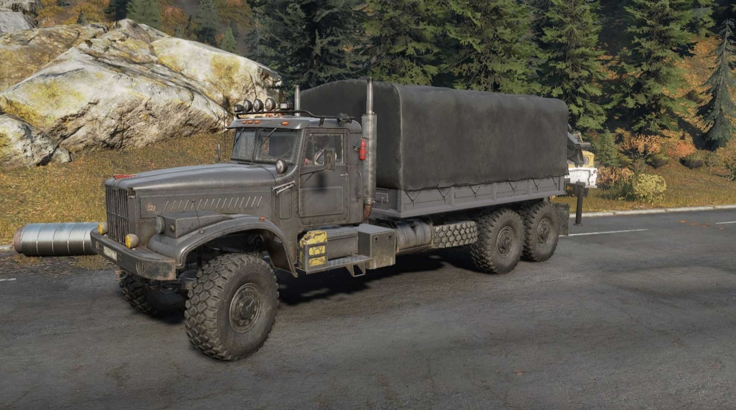 After a long period of inactivity, I decided to remake the Taiga 6455b. First of all, I lengthened the frame a little so that I could install a crane, replaced the exhaust pipes, because… the default ones interfered with the installation of tool boxes, I repainted all the cranes, I really didn’t like it when the bottom of the onboard platforms was painted along with the sides – I fixed it, replaced the Tayga nameplate with Kraz, of course my own engines, gearboxes, suspensions, an autonomous winch, there is a radar (look for it in accessories ), and a lot of other little things.
