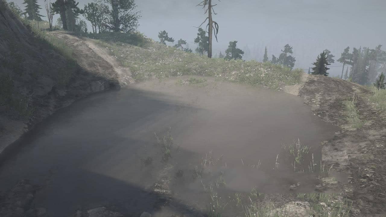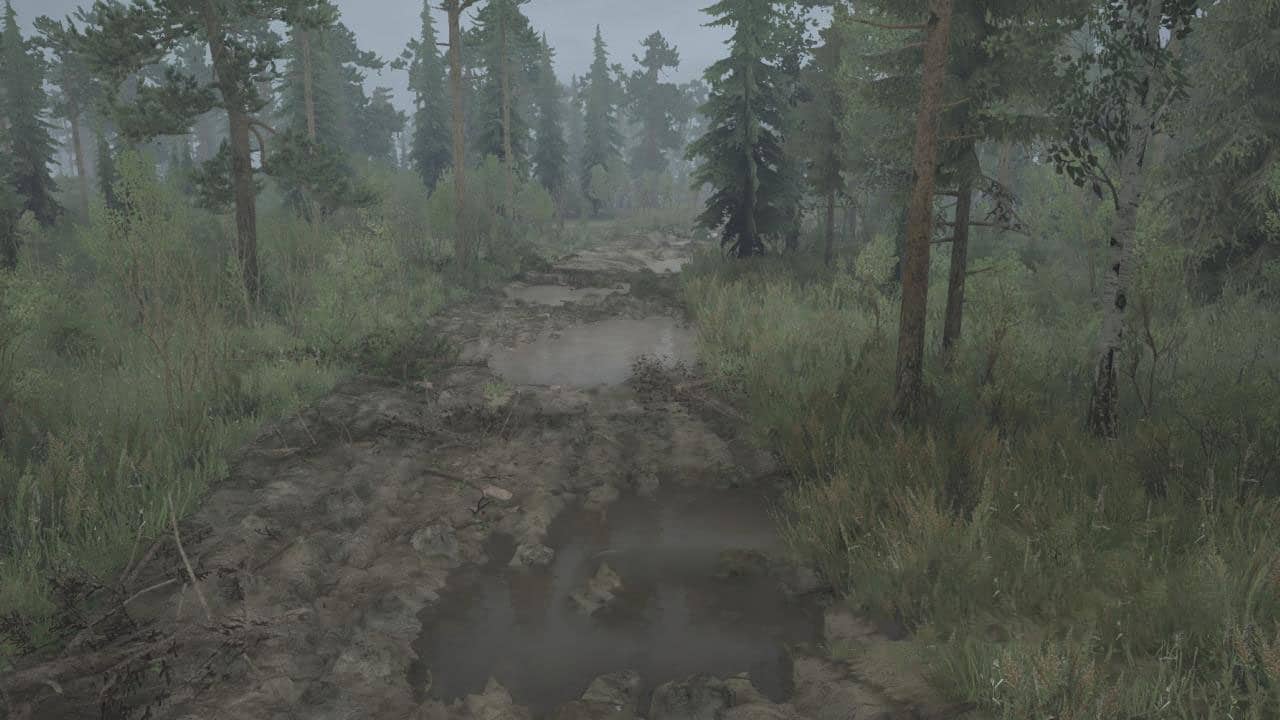 There are all types of terrain on the map: swamps, plains, villages, fun paths, lots of water, waterfalls, rivers, sloping roads, hidden pits in puddles. Mountain serpentine with its loading point.