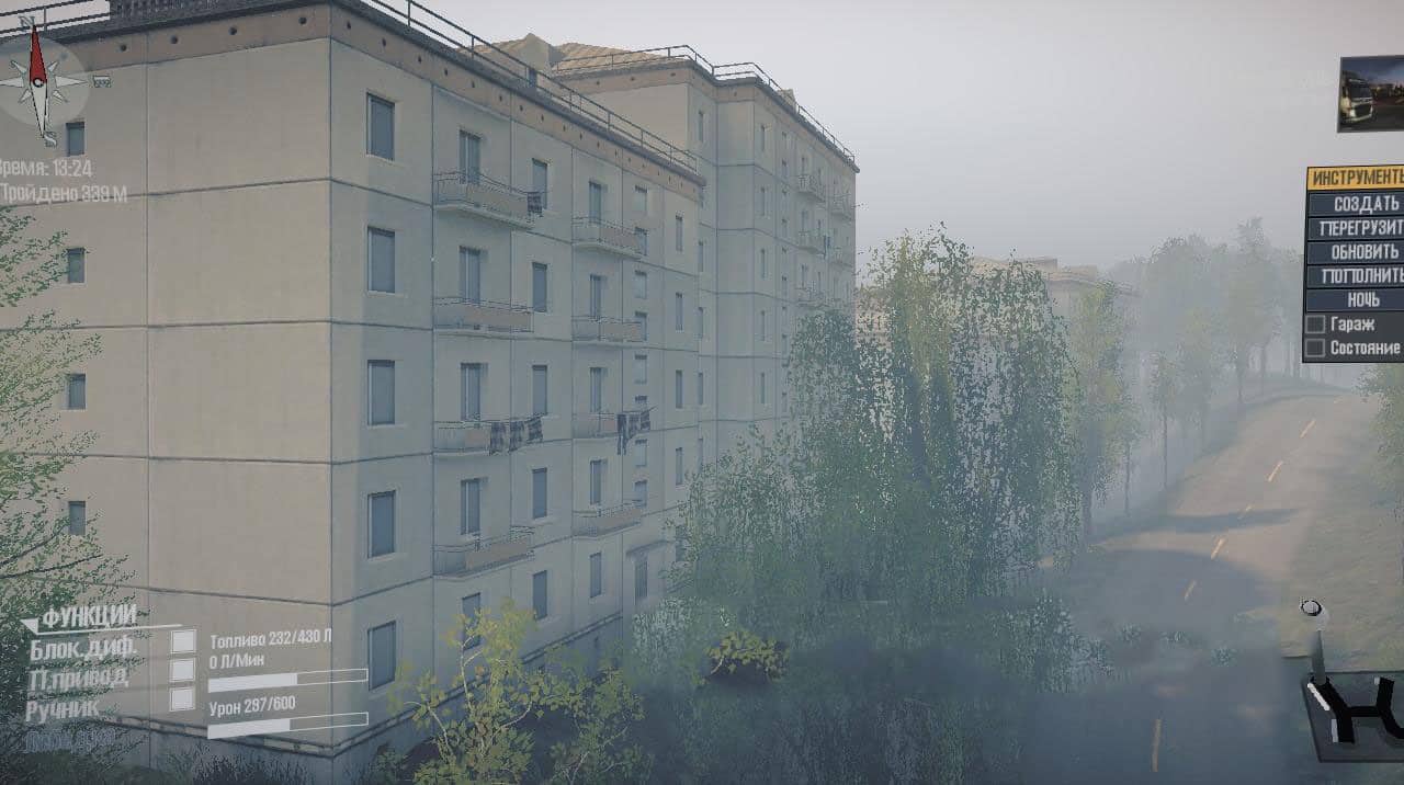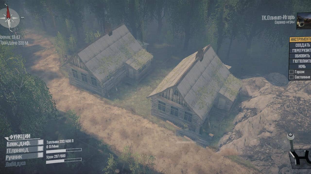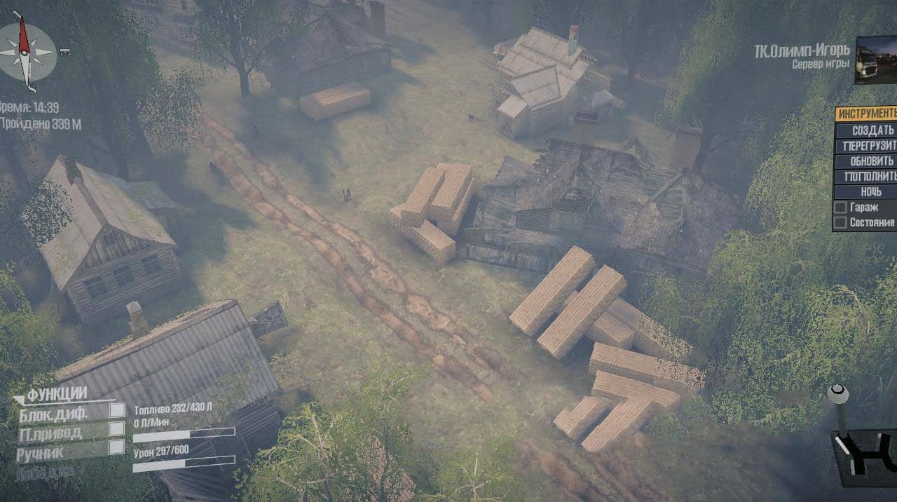 The map is made according to the plot. The village council needs to open 2 garages, then rebuild the villages, so the village council hired, called a team of builders, timber trucks to restore villages, roads, and much more timber trucks barely cope because the fuel runs out in tanks and then one of the brigades got into a fuel truck but he not in good condition.