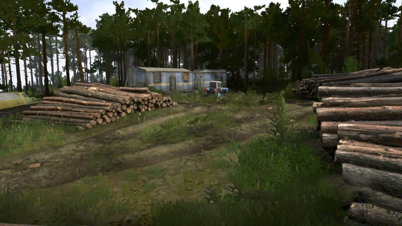 Standard scenario map: open the garage, deliver the cargo to the sawmills.