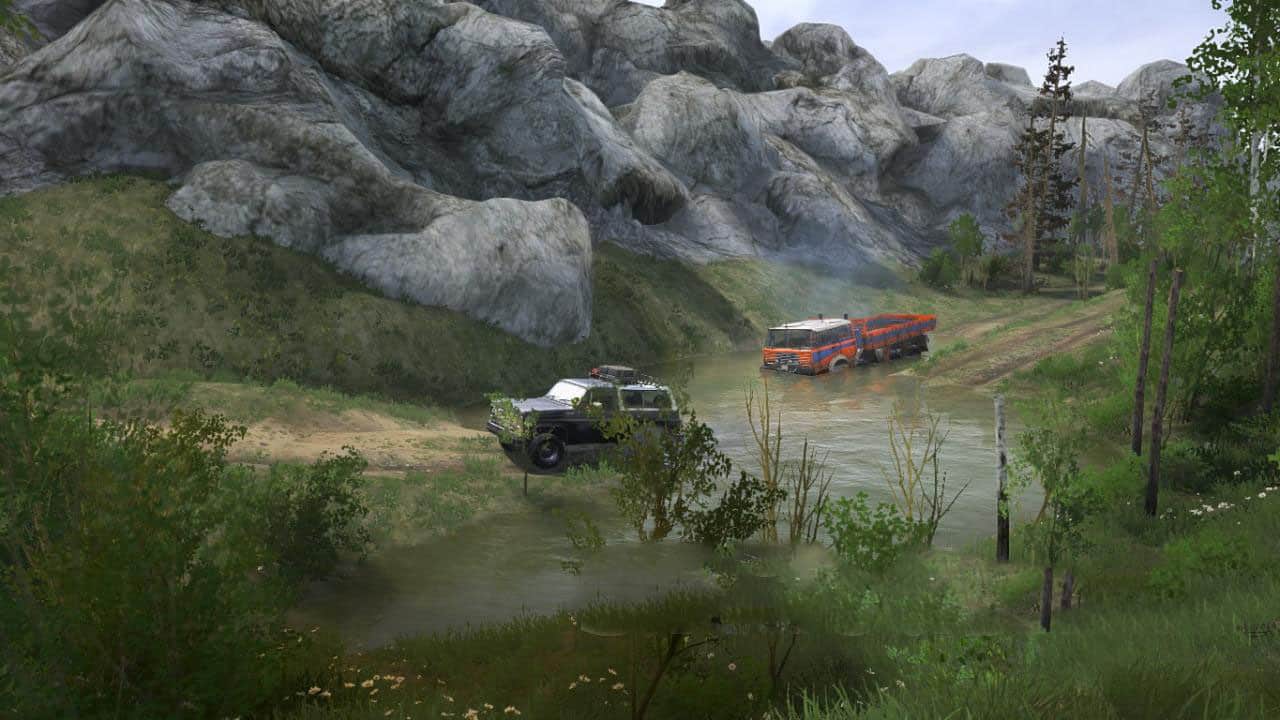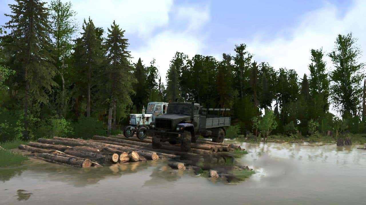 Standard scenario map: open the garage, deliver the cargo to the sawmills.
