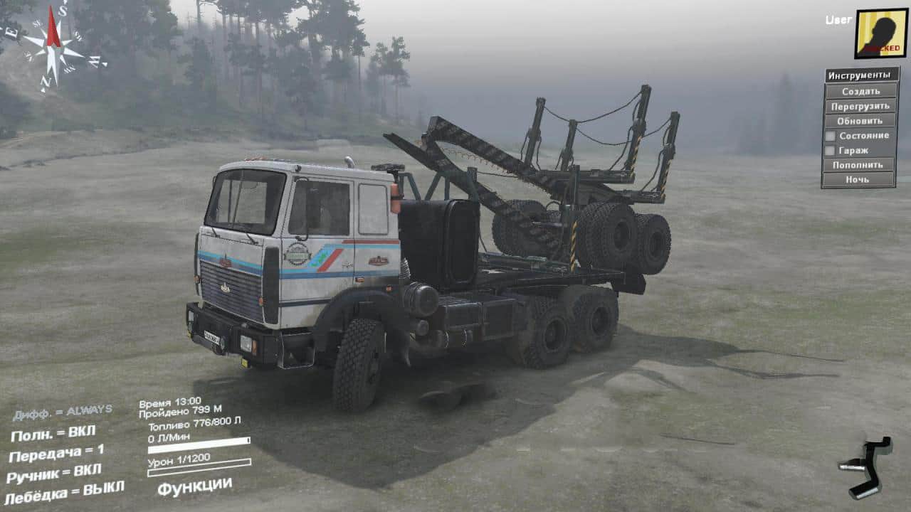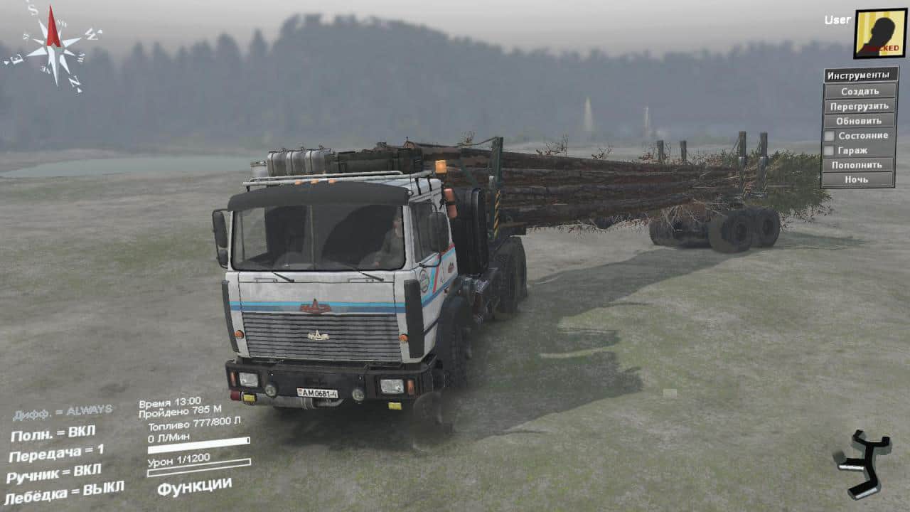 Machine from Artem Mohir (Darius). Laid out just for the addons of the mud, which here still did not seem to see. Interesting dissolution and cargo. Gathered for a ride, maybe someone else will come in handy. Rushing like a tank, do not stop). A load of pines (trees) can cause damage if it hits the ground hard, I did not try to do something with it, even more interesting. The game is not affected. I passed more than one card with this cargo. It has 9 addons, transports 4 and 6 points of cargo.