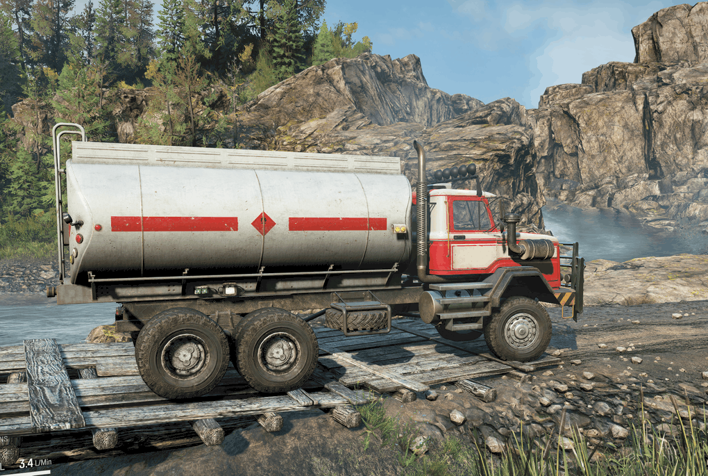 – The truck has its mass adjusted to keep it more firmly on the ground. It can tip and it does carry the front tires under load. The suspension is better than the default and raised options and seems to make the truck much easier to drive on rough trails