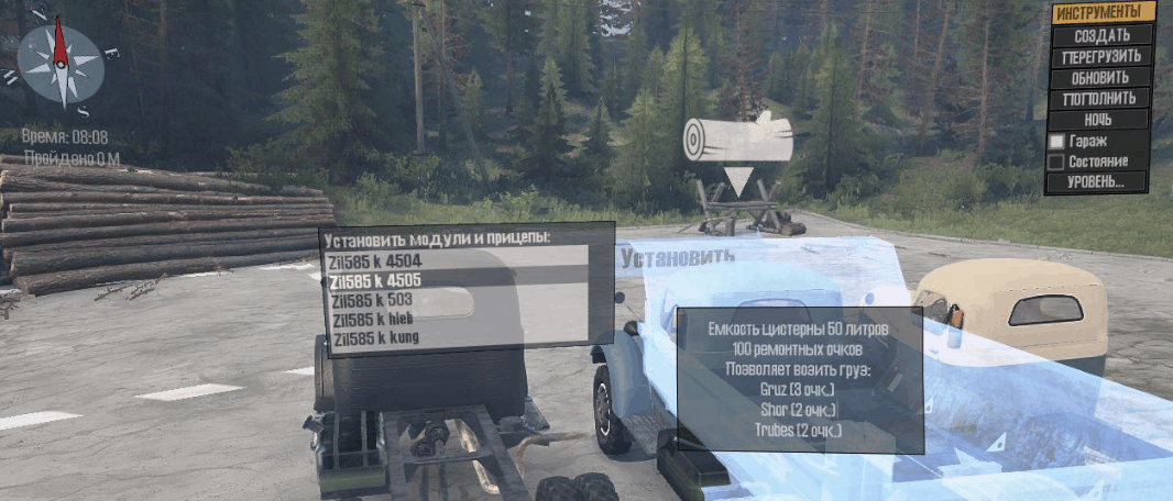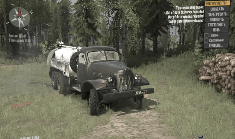 He corrected some jambs, removed unnecessary addons, reduced power, removed the all-wheel drive where it should not be, increased the weight of the load. Logs are now loaded and unloaded without bugs. The device is removed, the steering wheel does not turn – this is a question already to the author of 3D model. As for me, he does not need a gift, a third-person game does not work!