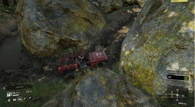 logs, stumps, concrete blocks, & muddy trails.