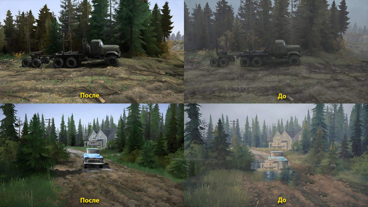In the folder * Add-ons and Demonstration * – additional options: new textures of logs, return pieces of dirt to the wheels, Cars – original grilles and cars removed by the author of the game, remove the moon, new sounds, Orange intelligence point, Structural logs option 1, Structural logs option 2 , Structural logs option 3, Full moon and screenshots of new changes.