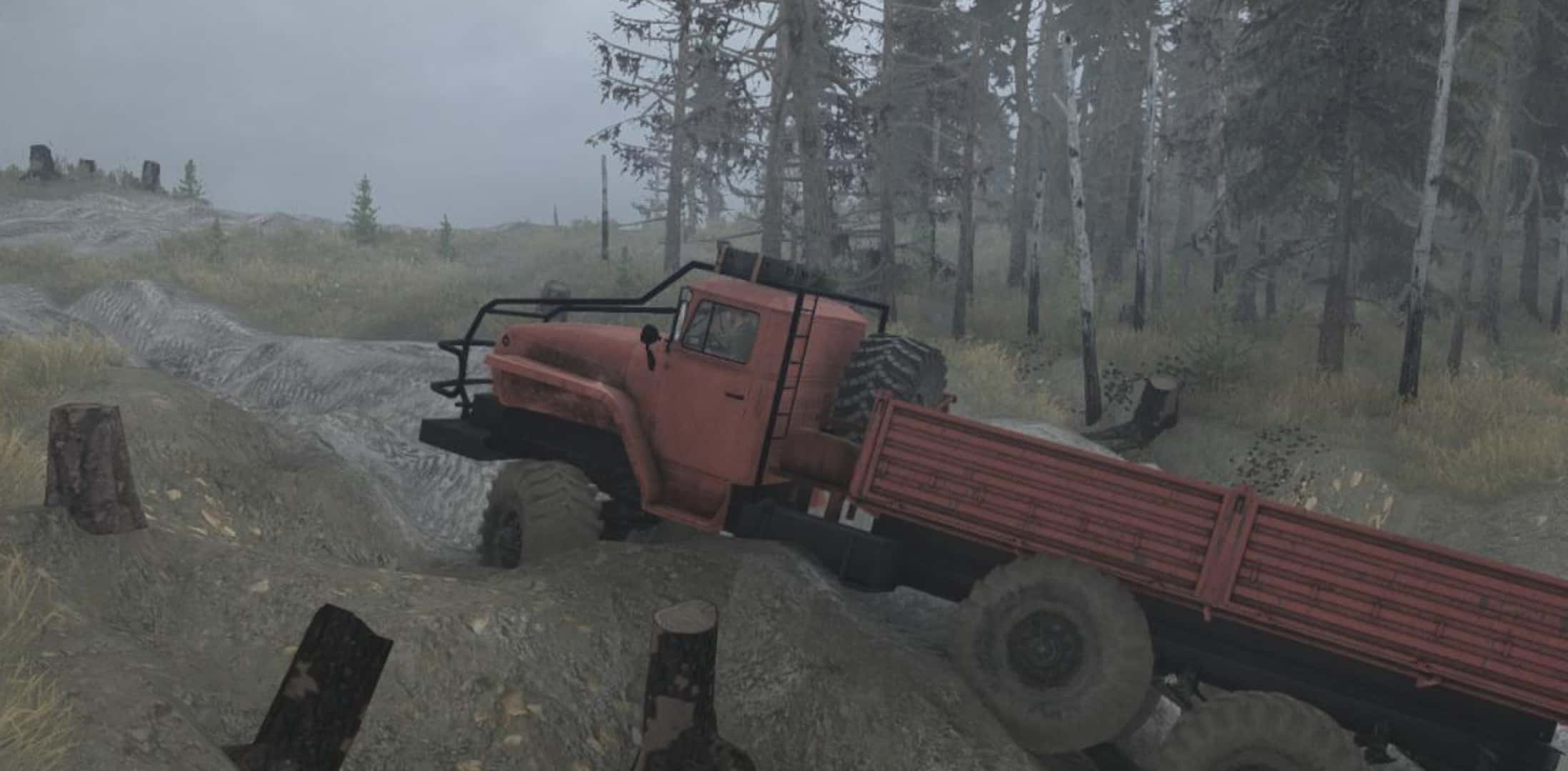 In the courtyard – autumn, to the horror of the “killed” roads have now become even worse … Erosion of the soil and heavy rains have done their job – part of the roads turned into hills-pits (where the roads remained – they are the same as in Spintires), part – disappeared altogether.