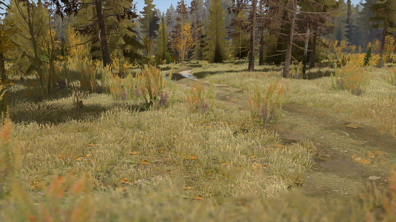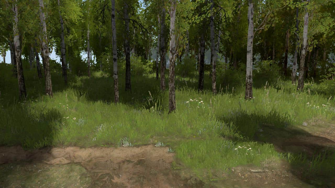 Realistic daylight, correct blue sky, dry autumn grass, little fog. SSAO shading is enabled (must be enabled in game settings)