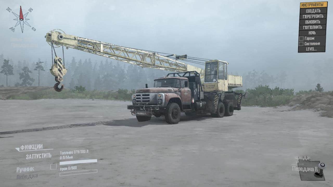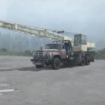 It rotates normally, it is even possible to hook something and pull it out of the swamp. The crane carries a garage (4 points), a small amount of belts and fuel. All with a tap. Other addons carry 3 and 6 points of cargo. The device behind the cab also has a strap. I repainted the car and add-ons for a change, but for those who do not like it, I saved it and its native textures in the archive, you will easily find.