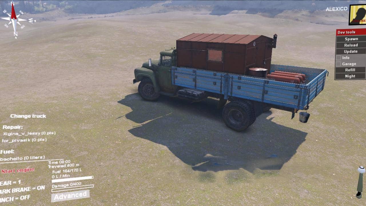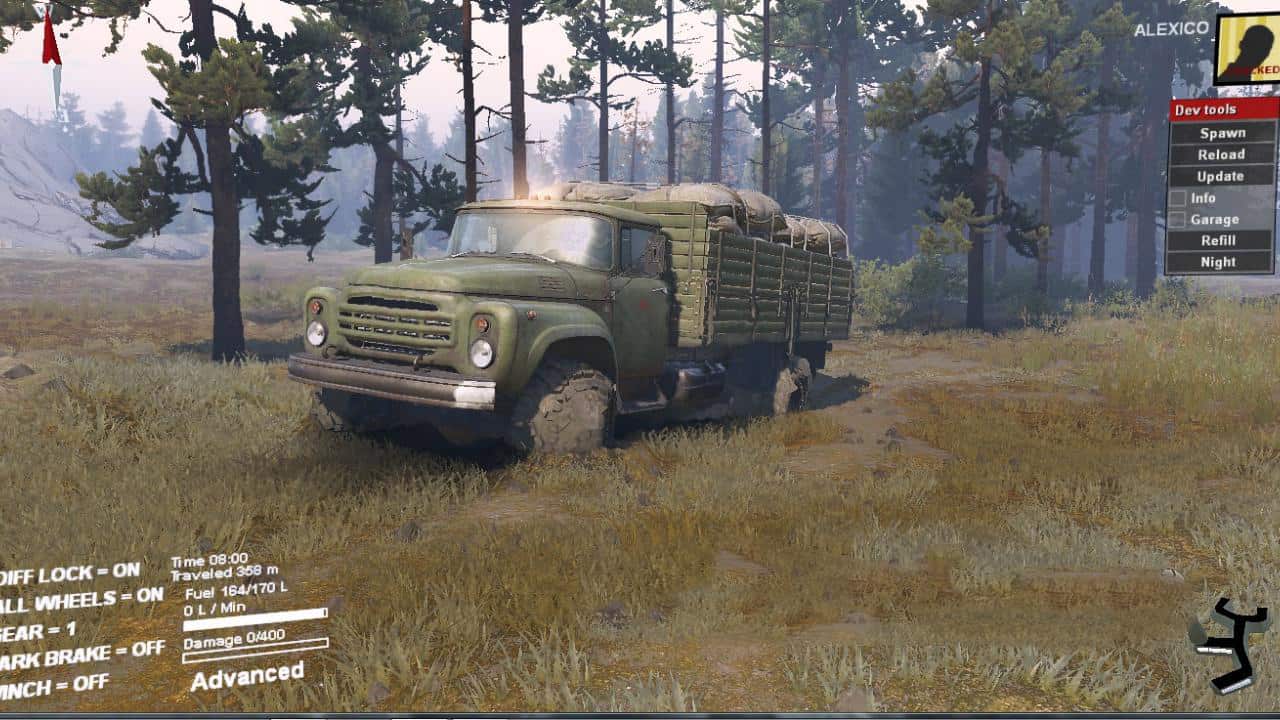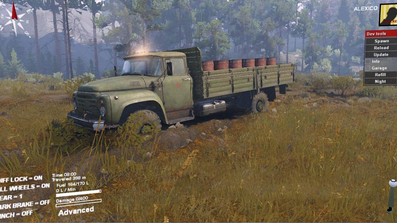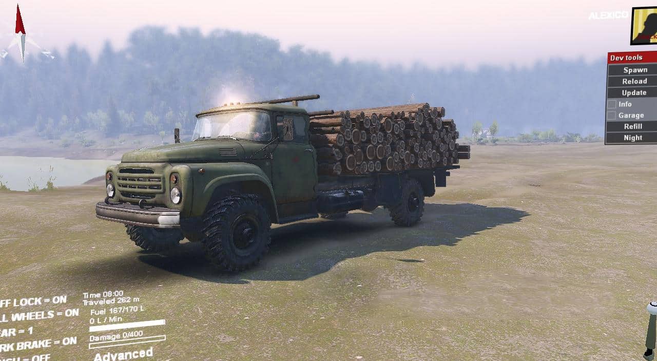 This Zil from the SpinTires v1.7 “Vehiclepack01DLC” add-on has been converted into a four-wheel drive. Some of his add-ons were also redone, and several of his add-ons and loads were added!